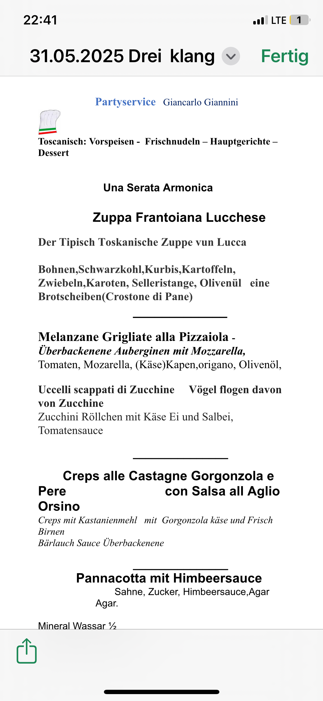 Menu + Konzert: 40€